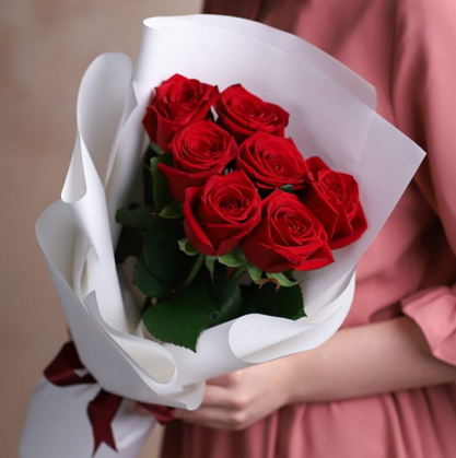 Букет из 7 красных роз с оформлением
