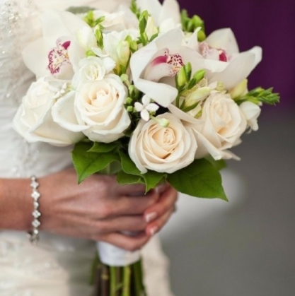Свадебный букет из роз, орхидей и фрезий