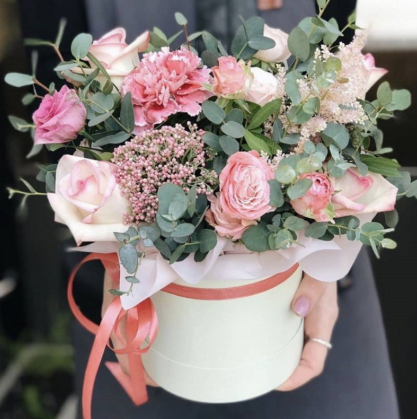 Дизайн коробки продуман до мелочей. Цветы, входящие в состав композиции, подобраны таким образом, чтобы подчеркнуть красоту и уникальность коробки.
