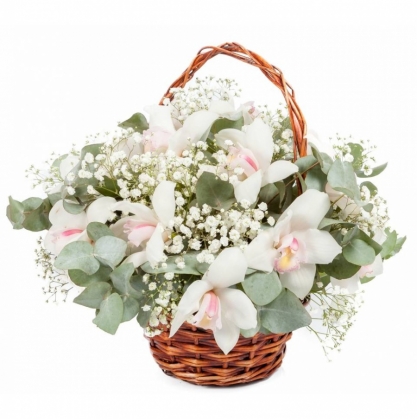 Корзина белых орхидей "Воздушный поцелуй" | Купить в Раменском